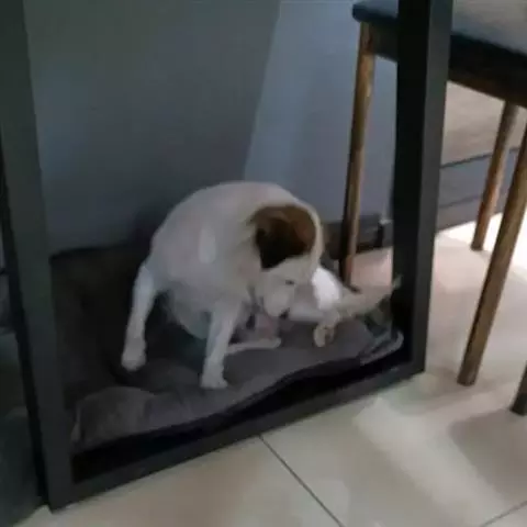 2、发情期母犬表情兴奋。随着发情期的持续,母犬的兴奋增强,表情比平时恍惚不安,吠声粗大,双目发亮。发情炽期,母犬坐卧不安,食欲锐减,拴养的母犬不断对空发出求偶吠,养犬者这时如果用手按压母犬的腰部或抚摸犬尾时,母犬站立不动,或把犬尾偏向一侧,犬的阴唇不断抽动,并且阴门频频开启和闭合,这时如用性成熟的公犬试情时,发情的母犬后肢叉开,出现主动接受交配状。养犬者在犬的发情期,一定要密切观察发情母犬的上述变化和表情,一定要记住母犬发情开始(母犬阴道流血第一天)的日子,以便推算出该母犬最佳的交配日:只有在最佳交配日配种,才能提高母犬的受胎率和产仔数。