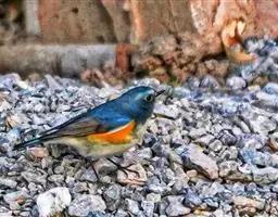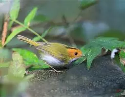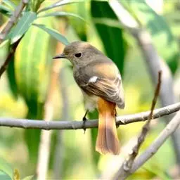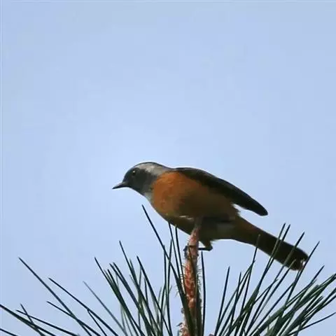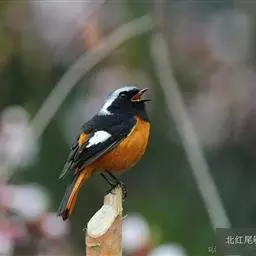 红尾歌鸲:体长13-15厘米。上体橄榄褐色。尾羽棕栗色,眼先和颊黄褐色,眼周淡黄褐色。…