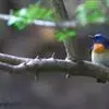 蓝喉仙鹟:体重15-17克,体长134-140毫米。是一种中等体型的蓝色鹟。雄鸟眼先黑色,腹部白色,…