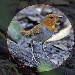 日本歌鸲:体型小似麻雀,但羽毛颜色较为美丽。嘴细长,嘴须不发达;翅短圆,上体草黄褐;雄鸟喉部橙棕色,…
