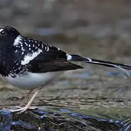 斑背燕尾是鹟科、燕尾属中型鸟类,体长24-25厘米。额至头顶前部白色,其余头、颏、喉、胸黑色,…