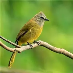 黄绿鹎,小型鸟类,体长19-22厘米。额至头顶暗褐具灰色羽缘,眼先黑色,…