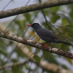 黑短脚鹎:是鸟纲、鹎科的中型鸟类,体长22-26厘米。嘴鲜红色,脚橙红色,尾呈浅叉状。羽色有两种色…