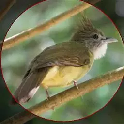 白喉冠鹎:体长20-25厘米。头顶红褐色,有长而细的羽冠、红褐色,头侧灰色。上体橄榄绿黄色,…