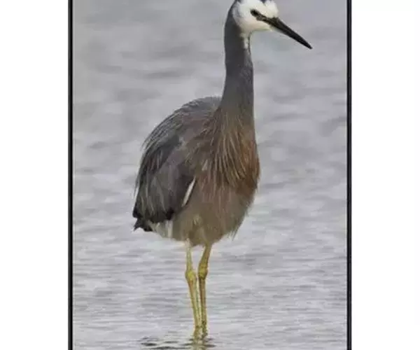 白脸鹭(学名:Egretta novaehollandiae):体长60-70厘米,体重550克。成鸟相对其他鹭科鸟类要小,正如它的名字,很容易通过白脸鹭的蓝灰色身体和独特的白脸来识别。嘴长而尖直,翅大而长,脚和趾均细长,胫部部分裸露,脚三趾在前一趾在后,中趾的爪上具梳状栉缘。雌雄同色。整体基本由三种羽毛苍白、蓝色和灰色组成。 前额、冠、下颏和上部喉头是白色的。顶冠颜色易变,白色有时沿着颈部延伸到脖子下。虹膜可以是灰色、绿色、暗黄色或桂香色,这些变化因个体而异。