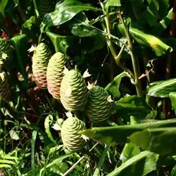 蕉芋:为美人蕉科的植物。多年生草本植物,高达3米。具块状根茎。茎紫色,直立,粗壮。叶互生;叶柄短;…