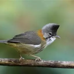 栗耳凤鹛(学名:Yuhina castaniceps),雌雄羽色相似。额、头顶至枕灰色,头顶有一短的不甚明显的羽冠,系由头顶羽毛向后延长形成、灰色具细的白色羽干纹,眼先灰色,眉纹白色不甚明显,其上有时杂有褐斑,眼后、耳羽、后颈和颈侧淡栗色或棕栗色、形成一宽的半领环,有的后颈栗色不明显或没有,各羽亦具白色羽干纹。主要分布于常见于喜马拉雅山脉及中国华南及华东海,一种体型中等的鸟类。4-7月是繁殖期。