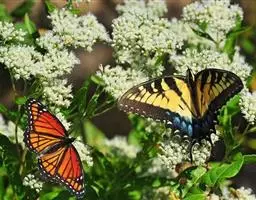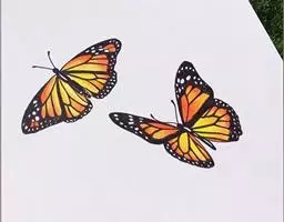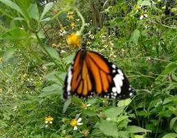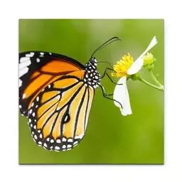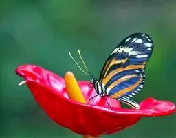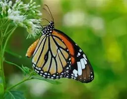 黑脉金斑蝶:翅阔8.6-12.4厘米。雄蝶较雌蝶为大。成年蝶颜色鲜艳,翅膀上有显眼的橙色及黑色斑纹…