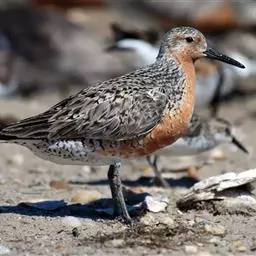 红腹滨鹬,是鹬科、滨鹬属的小型涉禽,体长23-25厘米,嘴较短而直、黑色,脚亦甚短、绿色。体较粗胖。…