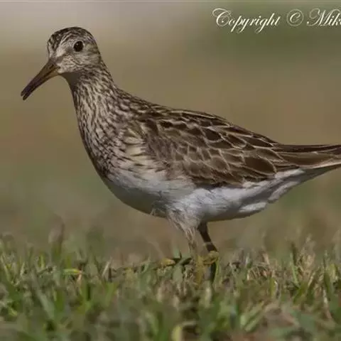 阔嘴鹬是涉禽,体长17厘米。特征为翼角常具明显的黑色块斑并具双眉纹。与黑腹滨鹬平滑下弯的嘴相比,…