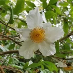 茶,(学名:Camellia sinensis (L.) O. Ktze.),灌木或小乔木,嫩枝无毛。叶革质,长圆形或椭圆形,先端钝或尖锐,基部楔形,上面发亮,下面无毛或初时有柔毛,边缘有锯齿,叶柄无毛。花白色,花柄有时稍长;萼片阔卵形至圆形,无毛,宿存;花瓣阔卵形,基部略连合,背面无毛,有时有短柔毛;子房密生白毛;花柱无毛。蒴果3球形或1-2球形,高1.1-1.5厘米,每球有种子1-2粒。花期10月至翌年2月。