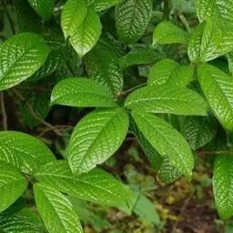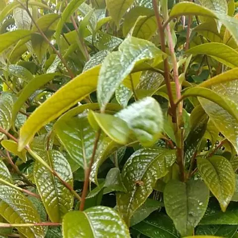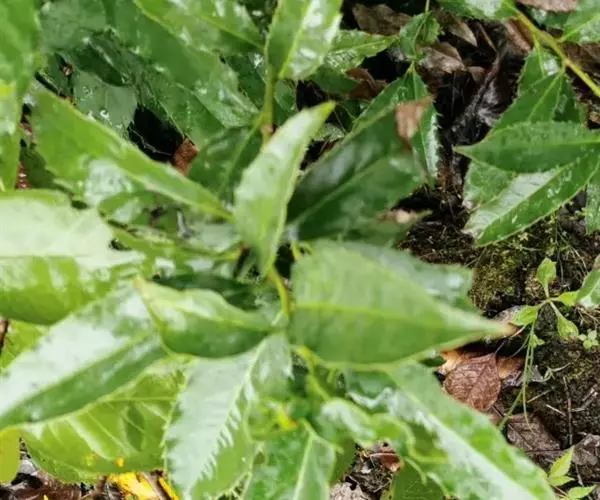 灌木或小乔木,嫩枝无毛。叶革质,长圆形或椭圆形,长4-12厘米,宽2-5厘米,先端钝或尖锐,基部楔形,上面发亮,下面无毛或初时有柔毛,侧脉5-7对,边缘有锯齿,叶柄长3-8毫米,无毛。