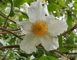 花1-3朵腋生,白色,花柄长4-6毫米,有时稍长;苞片2片,早落;萼片5片,阔卵形至圆形,长3-4毫米,无毛,宿存;花瓣5-6片,阔卵形,长1-1.6厘米,基部略连合,背面无毛,有时有短柔毛;雄蕊长8-13毫米,基部连生1-2毫米;子房密生白毛;花柱无毛,先端3裂,裂片长2-4毫米。