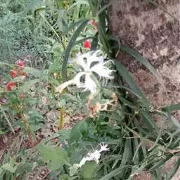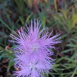 须苞石竹:多年生草本,高30-60厘米,全株无毛。茎直立,有棱。叶片披针形,长4-8厘米,宽约1厘米,顶端急尖,基部渐狭,合生成鞘,全缘,中脉明显。花多数,集成头状,有数枚叶状总苞片;花梗极短;苞片4,卵形,顶端尾状尖,边缘膜质,具细齿,与花萼等长或稍长;花萼筒状,长约1.5厘米,裂齿锐尖;花瓣具长爪,瓣片卵形,通常红紫色,有白点斑纹,顶端齿裂,喉部具髯毛;雄蕊稍露于外;子房长圆形,花柱线形。蒴果卵状长圆形,长约1.8厘米,顶端4裂至中部;种子褐色,扁卵形,平滑。花果期5-10月。