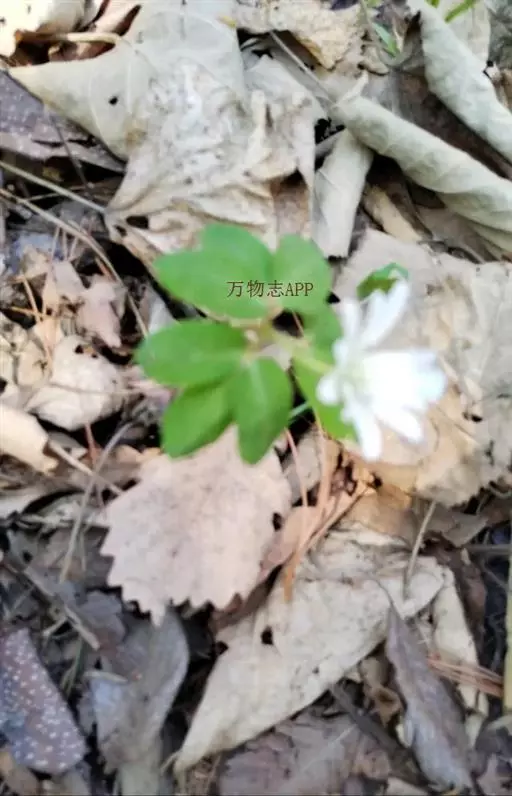 多年生草本,植株高10-30厘米。根状茎横走,圆柱形,长2-3厘米,粗3-7毫米。基生叶1,有长柄,长5-15厘米;叶片三全裂,全裂片有细柄,三或二深裂,变无毛,叶柄长2-7.8厘米,有疏柔毛。花草近无毛,苞片3,有柄(长2-5毫米),叶片近扇形,长1-2厘米,三全裂,中全裂片倒卵形或倒卵状长圆形,顶端圆形,上部边缘有少数小锯齿,侧全裂片稍斜;花梗1,长1-1.3厘米,变无毛;萼片9-15,白色,长圆形或线状长圆形,长1.2-1.9厘米,宽2.2-6毫米,顶端圆或钝,无毛;雄蕊长4-8毫米,花药椭圆形,长约0.6毫米,顶端圆形,花丝丝形;心皮约30,子房密被短柔毛,花柱短。4月至5月开花。