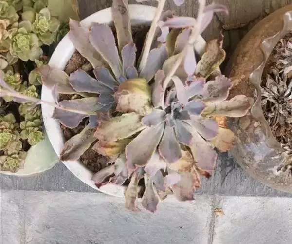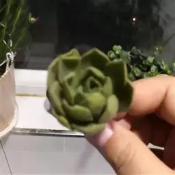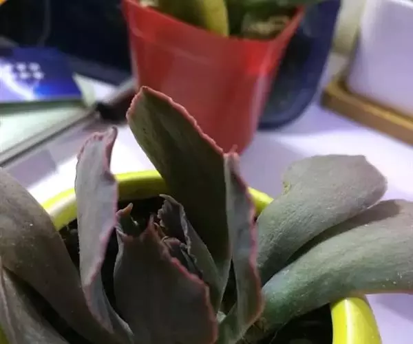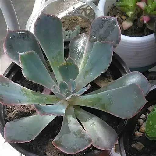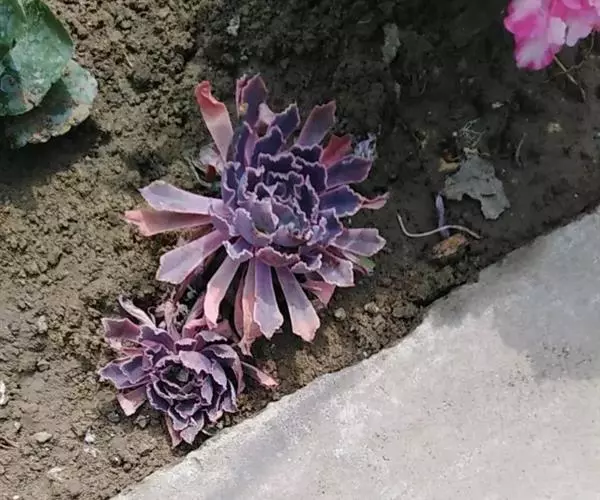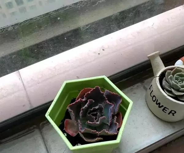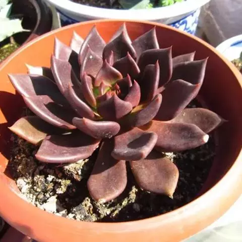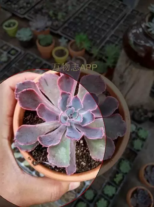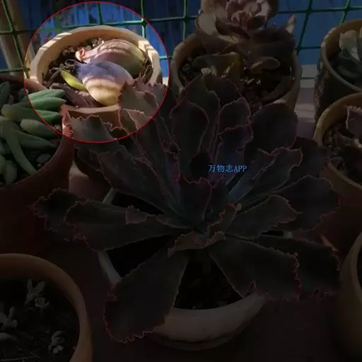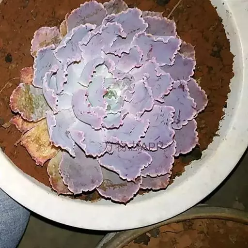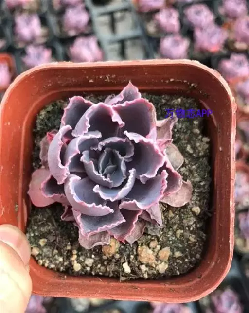 外形雍容大气,阳光充足时颜色呈紫红色,叶片宽大,微微向内卷起,表面有一层细细的粉。