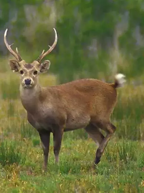 水鹿是偶蹄目鹿科鹿属哺乳动物,又称黑鹿、春鹿、山牛。身体高大粗壮。头骨细长,鼻骨、额骨发达,…