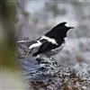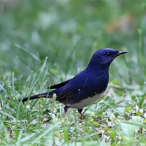 蓝额红尾鸲(学名:Phoenicurus frontalis)体长14-16厘米。雄鸟夏羽前额和一短眉纹辉蓝色,头顶、头侧、后颈、颈侧、背、肩、两翅小覆羽和中覆羽以及颏、喉和上胸概为黑色具蓝色金属光泽。主要以甲虫、蝗虫、毛虫、蚂蚁、鳞翅目幼虫等昆虫为食,也吃少量植物果实与种子。繁殖期5月末至8月初。