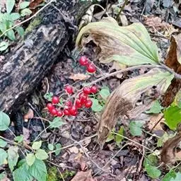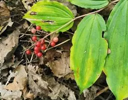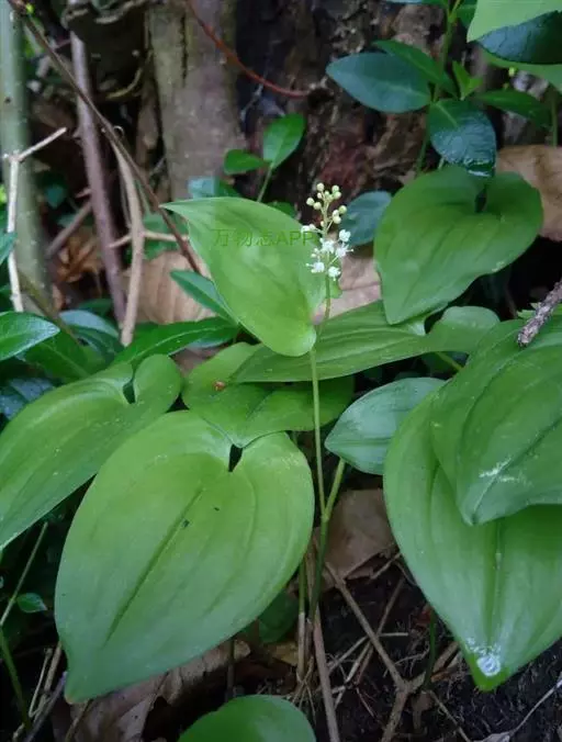 根状茎细长,有时分叉,长可达20厘米或更长,直径1-2毫米,节上有少数根,节间长1-3厘米。茎高8-20(-25)厘米,无毛或散生柔毛。基生叶有长达10厘米的叶柄,到花期已凋萎;茎生叶通常2枚,极少3枚,互生于茎的上部,三角状卵形,长 3-8(-10)厘米,宽2-5(-9)厘米,先端急尖至渐尖,基部心形,湾缺张开,下面脉上有柔毛或散生微柔毛,边缘有细小的锯齿状乳突或具柔毛;叶柄长1-2厘米,常有柔毛。总状花序直立,长3-5厘米,约有10-25朵花;花序轴有柔毛或乳头状突起;花白色,直径3-4毫米,单生或成对。花梗细,长约5毫米,顶端有关节;花被片矩圆形,长2-2.5毫米,有1脉;花丝短于花被片;花药卵形,长0.5毫米,黄白色;子房球形; 花柱长约1毫米。浆果球形,红色至紫黑色,直径3-6毫米。种子卵圆形,直径2-3毫米,种皮黄色,有颗粒状皱纹。花期5-7月,果期8-9月。