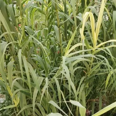 叶鞘长于其节间,肥厚、有小横脉;叶舌膜质,长约1.4厘米,顶端尖;叶片扁平宽大,长50-90厘米,宽15-30毫米。