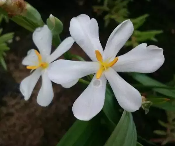花白,无明显花被筒;花被裂片倒披针形,内、外花被片近等大;雄蕊花药“丁”字着生;柱头3裂,子房长椭圆形。