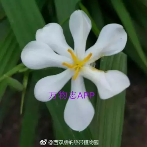 大扁竹兰扇形鸢尾,多年生草本,根茎横生,粗壮,黄白色,节明显;叶黄绿色,集生茎顶,叶片宽剑形,花蓝…