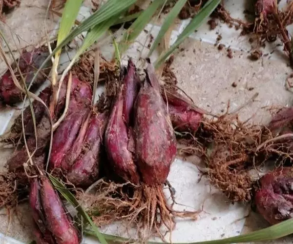 红葱(Eleutherine plicata Herb.),别名小红蒜,鳞茎卵圆形,鳞片肥厚,紫红色,径约2.5厘米。根柔嫩,黄褐色。
