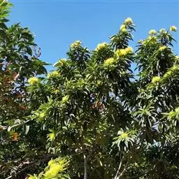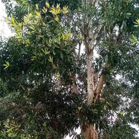 千层金(学名:Melaleuca bracteata F. Muell. )是桃金娘科白千层属植物,常绿乔木。树高可达6-8米,冠幅锥形。主干直立,枝条密集、细长、柔软,嫩枝红色。叶片金黄色,披针形,长2-2.5米,宽0.2厘米左右,具芳香味。穗状花序,花瓣绿白色。果实为蒴果。 [1-2]