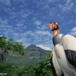 王鹫:是美洲鹫科、王鹫属大型食腐鸟类。体型很大,体长约78厘米。头部裸露,色彩极鲜艳醒目。嗉囊发达。…