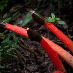 蛇头菌学名为“Mutinus Caninus”,可以称得上是最丑陋的菌类。蛇头菌菌柄呈圆柱形,菌盖呈鲜红色,菌盖顶端长有恶臭气味的粘稠状孢子。