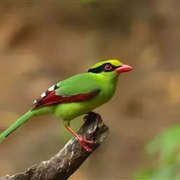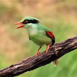 蓝绿鹊:中型鸟类,共有5个亚种。体长36-38厘米。尾长,嘴、脚红色。通体羽色主要为草绿色,…