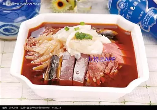 极品毛血旺是在此基础上加以改进加入了海参、毛肚、鳝鱼肉、黄喉片、午餐肉片。