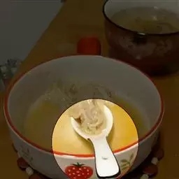 4、锅里放一点点油,烧热后,将重庆火锅底料放入锅中,大火炒化后调入黄酒和鸡汤(或清水),烧沸后,依次放入午餐火腿片,鸭血片,黄喉片,煮约4分钟后放入百叶丝,再煮约1分钟后关火,连汤带水倒入容器里。