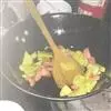 2、炒锅放置旺火上,加入少许油将海白菜,芹菜,大葱节,黄豆芽炒熟,放入味精,加少许香油,起锅装碗内做碗内做底用。