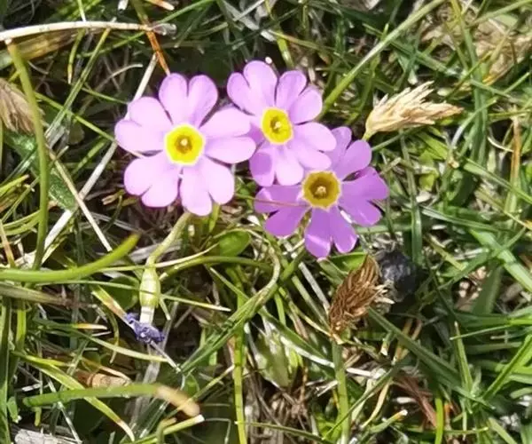 花葶1-6枚自叶丛抽出,有时甚短,深藏于叶丛中并短于花梗,有时高可达13厘米,长于叶丛和花梗;花1-10朵生于花葶端;苞片狭矩圆形至披针形,长4-10毫米,先端钝或锐尖,基部稍下延成垂耳状;花梗纤细,长2-8厘米;花萼狭钟状,长3-5毫米,明显具5棱,沿棱脊常染紫色,分裂深达全长的1/3-1/2裂片披针形或近三角形,稍锐尖;花冠粉红色或紫红色,冠筒口周围黄色,冠筒长4.5-7毫米,通常稍长于花萼,冠檐直径7-10毫米,裂片阔倒卵形,先端2深裂;长花柱花:雄蕊着生于冠筒中部,花柱伸出冠筒口;短花柱花:雄蕊着生于冠筒上部,花药微露出筒口,花柱长达冠筒中部。