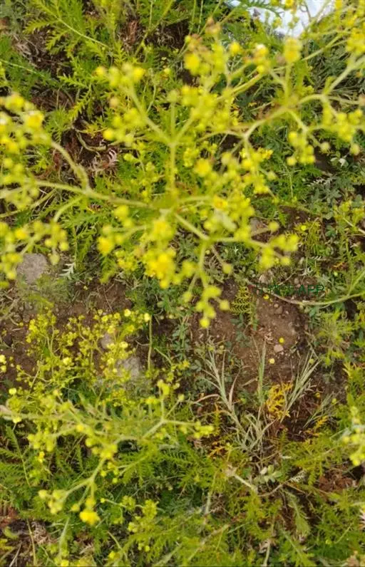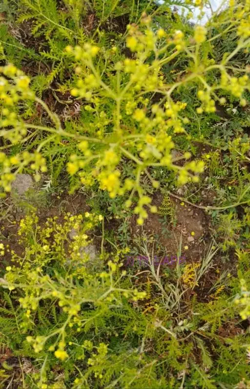 糙叶败酱(亚种)( Patrinia rupestris (Pall.) Juss. subsp. scabra (Bunge) H. J. Wang),败酱科植物,多年生草本,茎丛生,茎上部多分枝,叶对生,裂片倒披针形、狭披针形或长圆形,聚伞花序顶生,呈伞房状排列,花小,黄色,花冠合瓣,果实翅状,卵形或近圆形,种子位于中央。