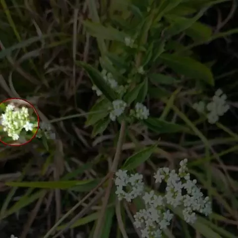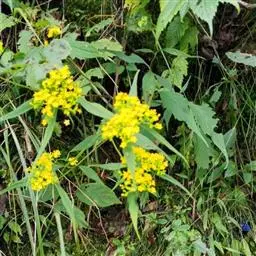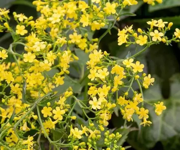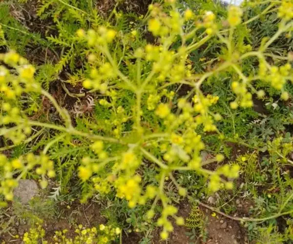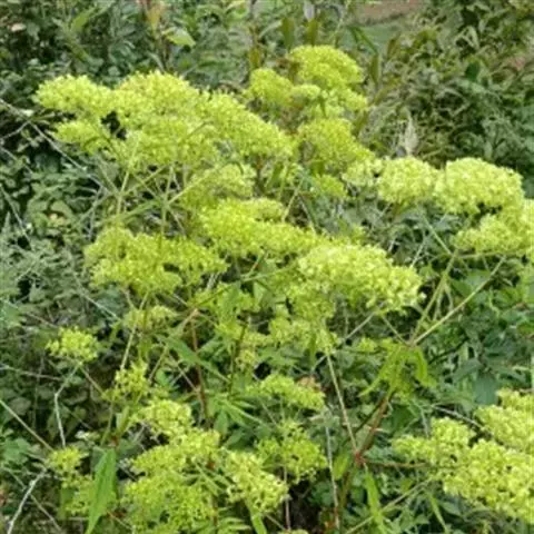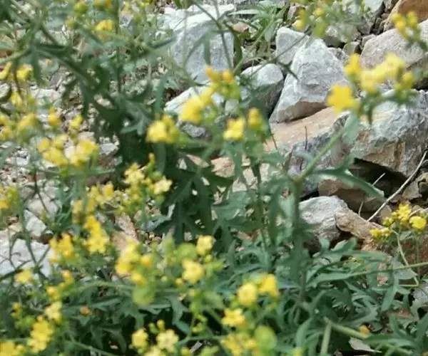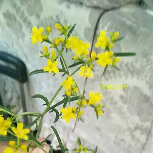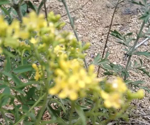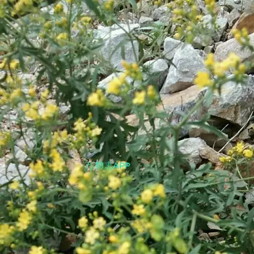 糙叶败酱( Patrinia rupestris Juss.subsp.scabra H.J.Wang),败酱科植物,多年生草本,茎丛生,茎上部多分枝,叶对生,裂片倒披针形、狭披针形或长圆形,聚伞花序顶生,呈伞房状排列,花小,黄色,花冠合瓣,果实翅状,卵形或近圆形,种子位于中央。