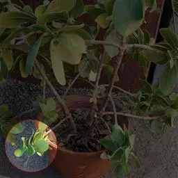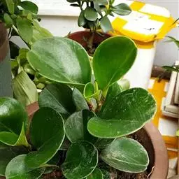 肥厚多肉的叶片椭圆形,对生或轮生,具短柄,叶片两边向上翻,使叶面中间形成一浅沟,背面呈龙骨状突起。叶面光亮,稍呈透明状。花序棒状,绿色,春夏季节开放。