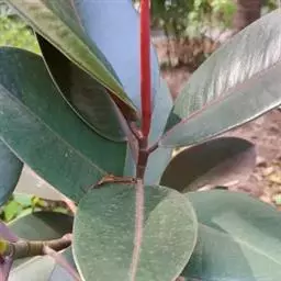 印度榕,别名橡皮树,桑科榕属多年生常绿乔木植物。株高30米;树皮灰白色,平滑;叶厚革质,…