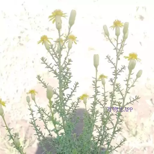头状花序径1-1.5 厘米,单生于枝端。总苞倒卵形,长8-9毫米;总苞片4-5层,线状卵圆状至长圆状披针形,渐尖,干膜质,基部常稍革质,黄绿色,背面无毛,上部或全部有缘毛,外层渐小。舌状花较总苞长半倍,舌浅黄色,椭圆状线形,长约6毫米,顶端有3个细齿;花柱分枝细长,顶端圆形;管状花花冠长约6毫米,上部狭漏斗状,顶端有尖裂片;花药顶端稍尖;花柱分枝顶端钝。冠毛白色,与管状花药等长,有约70个细毛。瘦果长1.5毫米,有多数细沟,被腺和疏粗毛,上端有较长的毛。花期5-8月,果期7-9月。