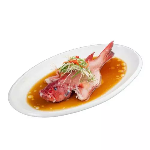 清蒸翡翠石斑鱼 石斑鱼中以青石斑鱼蛋白含量最高,比大黄鱼的蛋白含量都高,其次是棕点石斑鱼,珍珠龙胆石斑鱼和点带石斑鱼,七带石斑鱼和赤点石斑鱼的蛋白含量与中国花鲈、大菱鲆相近,而鞍带石斑鱼和美洲黑石斑鱼与真鲷的蛋白含量接近,相 对 比 较 低,约 为66%(干重计),但脂肪含量却比大菱鲆高10多倍。除鞍带和美洲黑石斑鱼脂肪含量明显较高外,其他几种石斑鱼的脂肪含量与真鲷相近,略高于大黄鱼和大菱鲆。石斑鱼中必需氨基酸占氨基酸总量均超过37%,跟FAO /WTO所建议的理想蛋白模式比 较,石斑鱼的必需氨基酸指数(EAAI)均较高。通常产品的EAAI越高营养价值也越高,点带石斑鱼EAAI为103,棕点石斑鱼的EAAI为90.19,鞍带石斑鱼EAAI为95.87,说明石斑鱼是质量较好的蛋白质源。另外,石斑鱼的鲜味氨基酸(谷氨酸Glu、天冬氨酸Asp、甘氨酸Gly、丙 氨 酸Ala)含量也十分丰富,这说明了石斑鱼味道比较鲜美。石斑鱼脂肪含量比其他海水鱼类略高,但脂质均为优质脂肪酸,其中多不饱和脂肪酸含量丰富,二十碳五烯酸(EPA)和二十二碳六烯酸(DHA)含量占多不饱和脂肪酸含量58% ~88%,其对人体的健康有重要的作用。所以石斑鱼是味道鲜美、高蛋白、高优质不饱和脂肪酸、氨基酸组成均衡的一种营养价值极高的优质海水鱼类 。