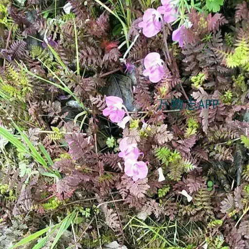 藓生马先蒿又名:藓状马先蒿。多年生草本,干时多少变黑,多毛。根茎粗,有分枝,端有宿存鳞片。茎丛生,在中间者直立,在外围者多弯曲上升或倾卧,长达25厘米,常成密丛。叶有柄,柄长达1.5厘米,有疏长毛;叶片椭圆形至披针形,长达5厘米,羽状全裂,裂片常互生,每边4-9枚,有小柄,卵形至披针形,有锐重锯齿,齿有凸尖,面有疏短毛,沿中肋有密细毛,背面几光滑。花皆腋生,自基部即开始着生,梗长达15毫米,一般较短,密被白长毛至几乎光滑;萼圆筒形,长达11毫米,前方不裂,主脉5条,上有长毛,齿5枚,略相等,基部三角形而连于萼管,向上渐细,均全缘,至近端处膨大卵形,具有少数锯齿;花冠玫瑰色,管长4-7.5厘米,外面有毛,盔直立部分很短,几在基部即向左方扭折使其顶部向下,前方渐细为卷曲或S形的长喙,喙因盔扭折之故而反向上方卷曲,长达10毫米或更多,下唇极大,宽达2厘米,长亦如之,侧裂极大,宽达1厘米,稍指向外方,中裂较狭,为长圆形,长约8毫米,宽6.5毫米,钝头;花丝两对均无毛,花柱稍稍伸出于喙端。蒴果稍扁平,偏卵形,长1厘米,宽7毫米,为宿萼所包。花期5-7月;果期8月。
