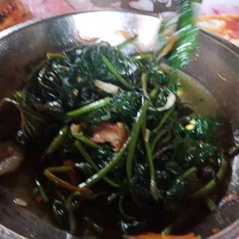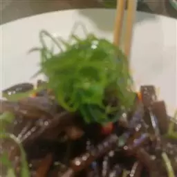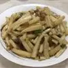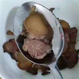 黑木耳和猪肉(切下来的瘦肉)一起放锅里炒熟并加少许盐。