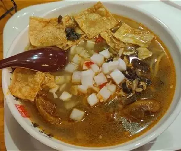 辅料:酸笋,酸菜,猪脊骨,生菜,炸花生米,萝卜干,黑木耳,草果,小茴香,香叶,葱花。