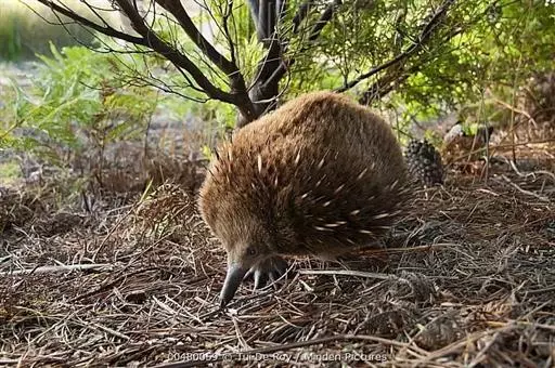 又称刺食蚁兽,身上即有毛又有棘刺,喙长,以白蚁等为食,擅长挖掘。针鼹虽为卵生的单孔类,却也有育儿袋,卵直接产到育儿袋中孵化,而孵化后幼兽继续在袋中生活一段时间。