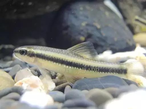 体灰色微带黑。体侧中轴自吻部至尾鳍基有1黑条纹,其宽度相当于2个鳞片,与眼径约等长,此纹后半部色较深。颊部、额部均呈桔红色。背鳍灰色,其他各鳍淡桔黄色,鳍条上常带有细小黑色点。生殖期间雄鱼体色较鲜艳,吻部具有较大的珠星;雌鱼产卵管延长,最长的约与头长相等。