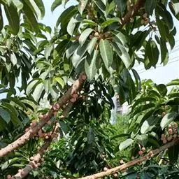 花后结出很多圆形的果,幼果黄绿色,熟后橘红色。