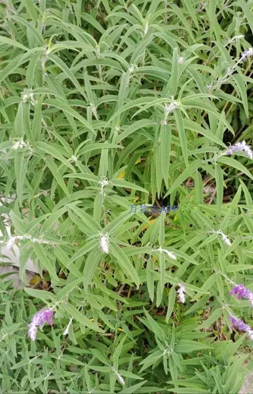 多年生草本植物,株高约30~70厘米。茎直立多分枝,茎基部稍木质化。叶片久状披针形,对生,上具绒毛,有香气。轮伞花序,顶生,花紫色,具绒毛,白至紫色。【花果期】花期秋季,果期冬季