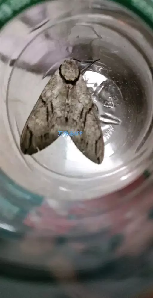 青背长喙天蛾属动物界节肢动物门昆虫纲鳞翅目天蛾科长喙天蛾属,前翅反面暗褐,基部污黄,各横线呈深色波…