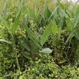 水竹芋为竹芋科多年生草本植物,植株高可达2米。叶互生,叶片卵形,叶色青绿,叶缘紫色,上被白粉,叶片…